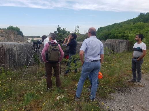 C’est à l’initiative d’un bénévole local, passionné du Grand-Duc et par ses liens qu’il a tissé au fil du temps avec la profession, qu’a eu lieu cette première rencontre naturaliste en carrière. Les représentants contactés, des sociétés Equiom, Sogepierre, Rocamat, MDB, SETP ont répondu à cette invitation, accompagnés de représentants de la Ligue pour la Protection des Oiseaux de Côte d’Or (LPO21, bénévoles et salarié), et de la chargée de mission de la ZPS « arrière côte de Dijon et de Beaune ». Seul absent, pas disponible, le représentant de la Carrière de Nantoux.