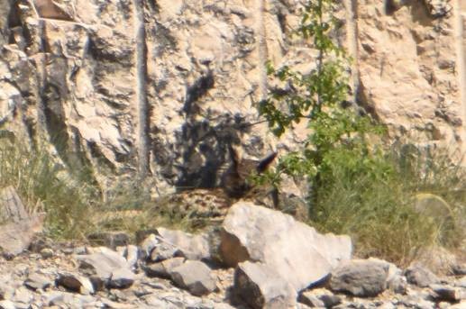 Où peut-elle bien être ? Longues vues et jumelles scrutent. C’est sur un ancien gradin, à mi-hauteur, protégé d’une muraille en retour, exposée au soleil, au milieu d’un arbuste garni de touffes de graminées que la femelle est installée, à peine visible.